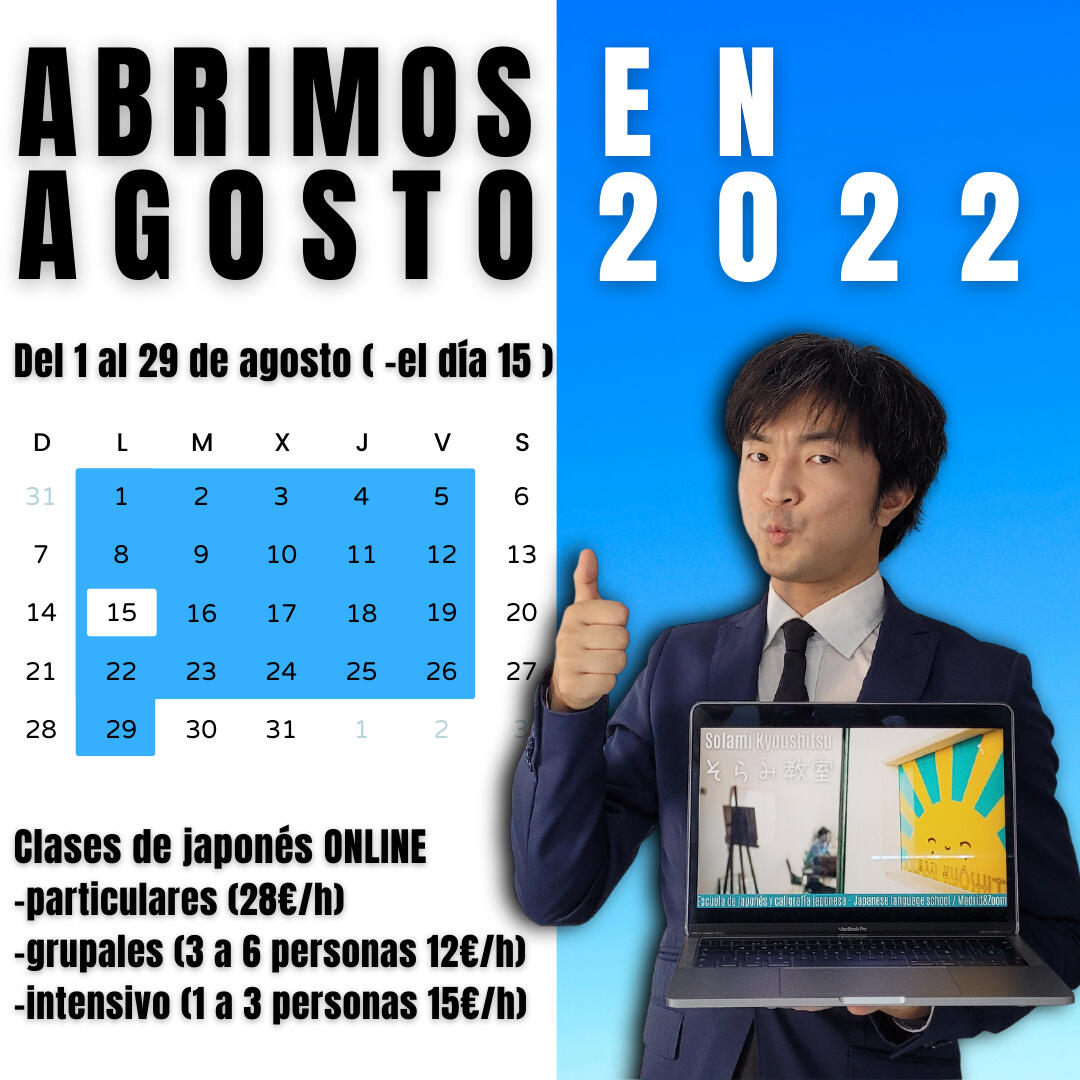 Nuestra plantilla de profesores nativos japoneses lograrán que el curso intensivo se acerque lo máximo posible a una inmersión lingüística para que a final de mes tengas el nivel deseado como si volvieras de Japón sin limitar tus planes de futuro (siempre y cuando sigas las indicaciones descritas por los profesores).